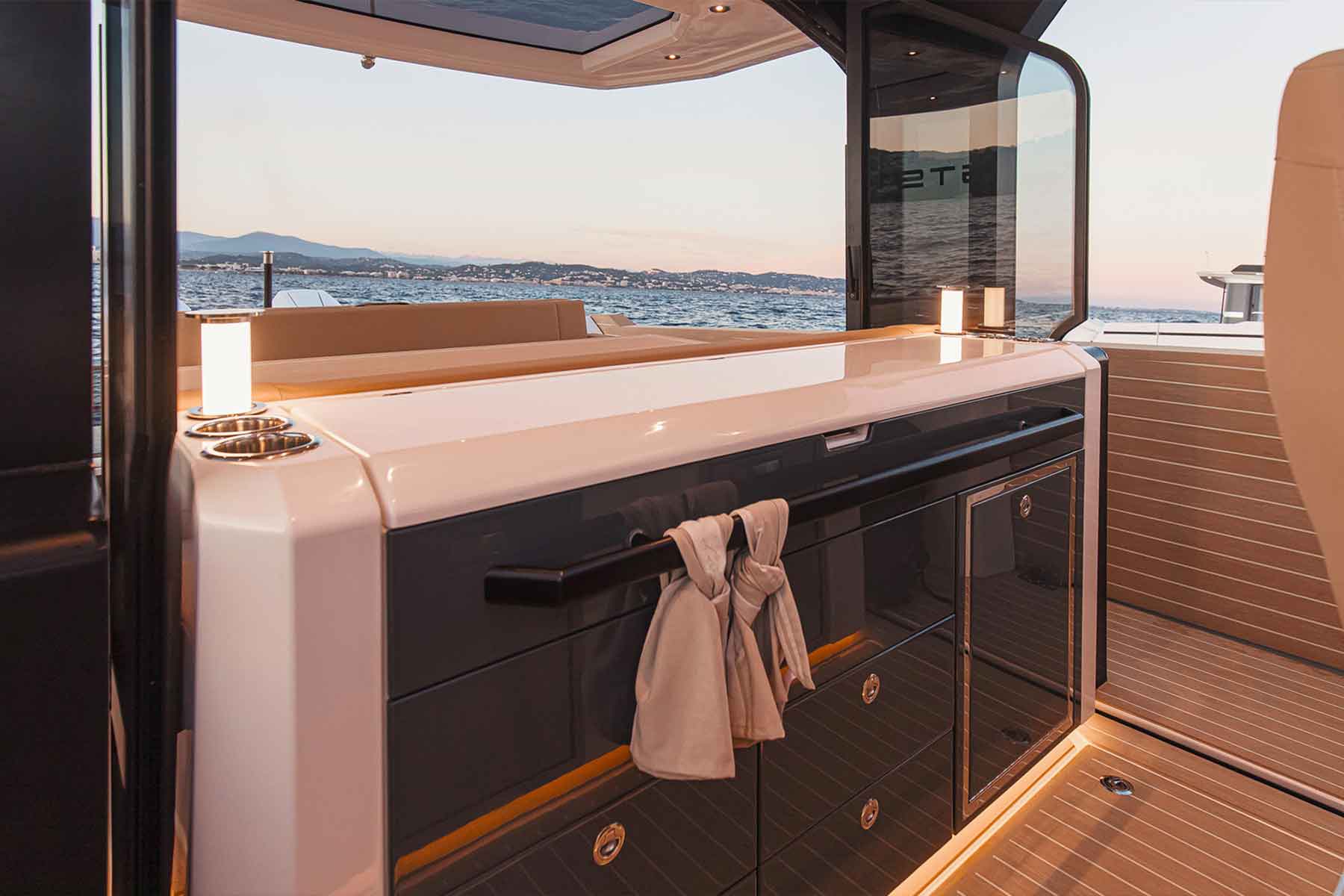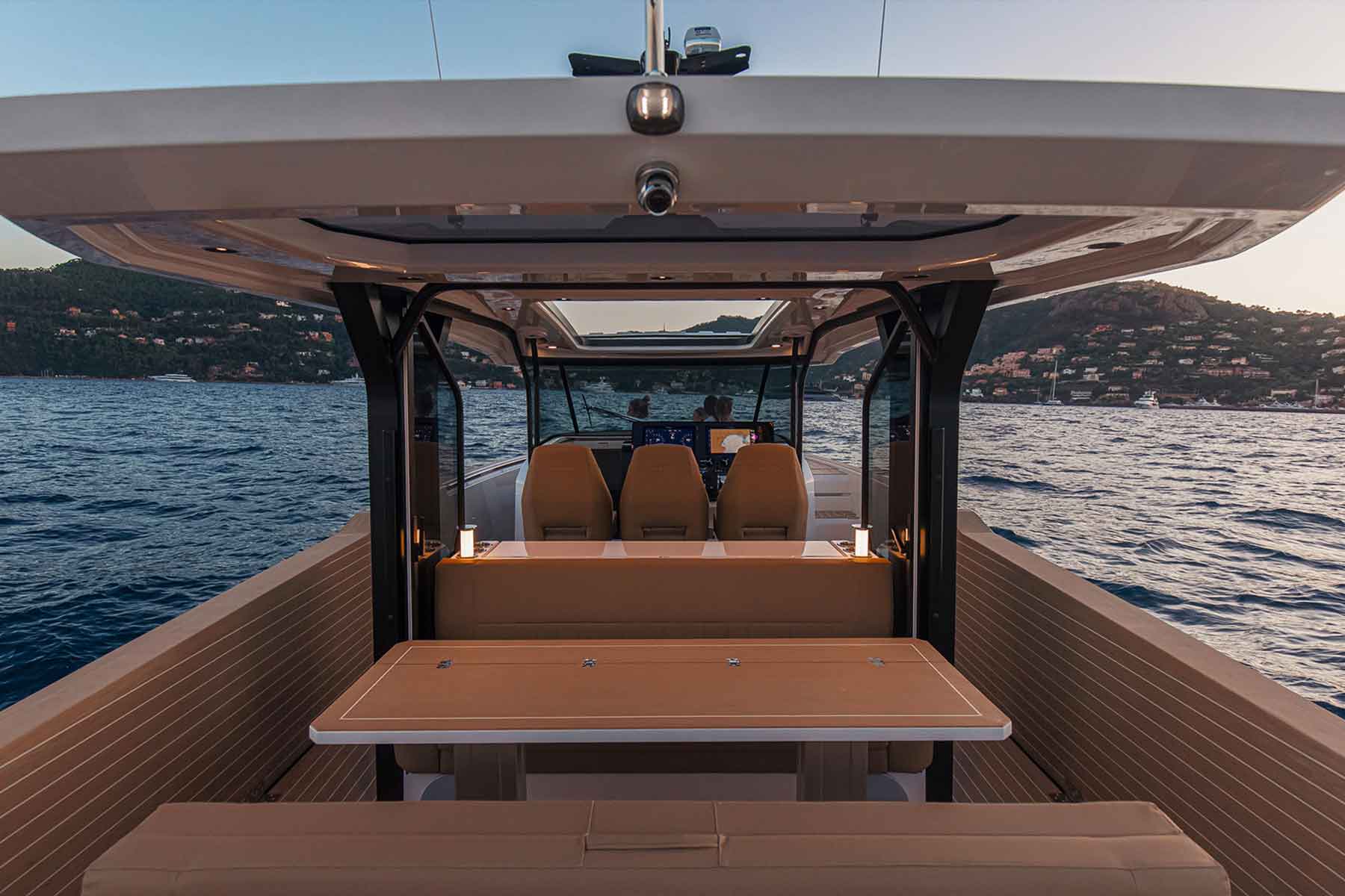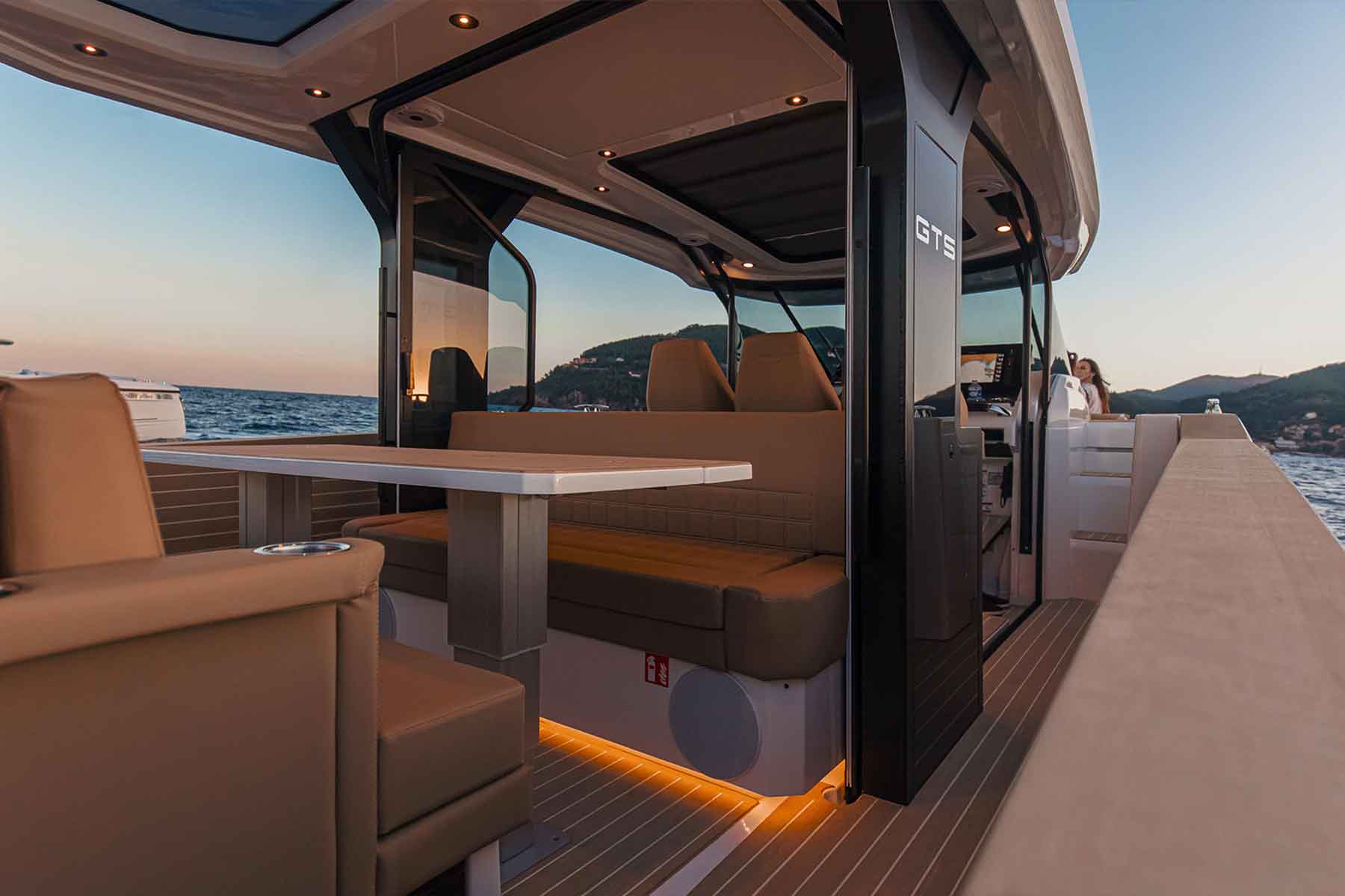 The Saxdor 400 GTS is the purest expression of open boating in the Saxdor 400 series. With its walkaround layout, sleek glass shielding around the helm, and signature folding terraces that expand your connection to the water, it redefines the open-air experience. Modular seating and convertible sunbeds seamlessly adapt to your plans, creating an effortless flow for lounging, socializing, or thrilling rides. Built on the same agile twin-stepped hull as its siblings, the GTS delivers a dynamic, responsive drive, while ensuring everyday usability with thoughtful protection and space solutions.