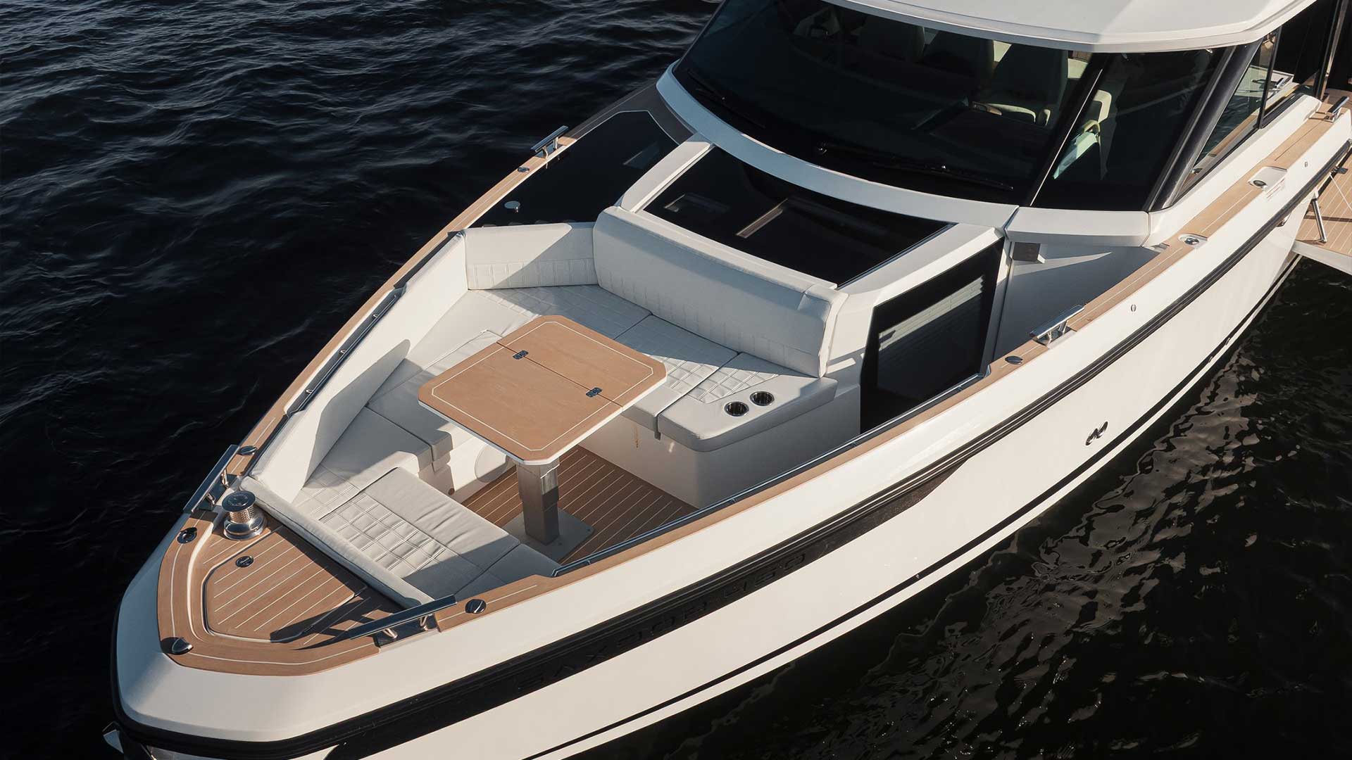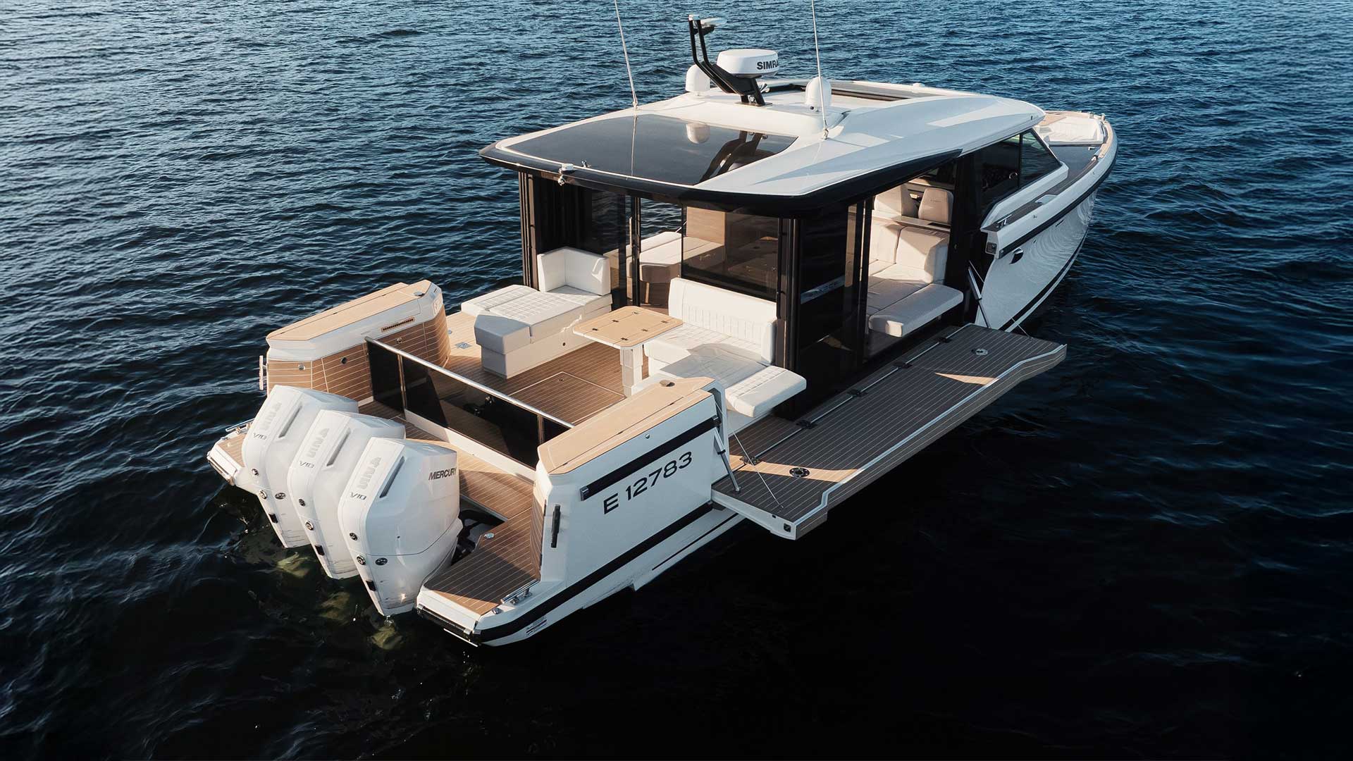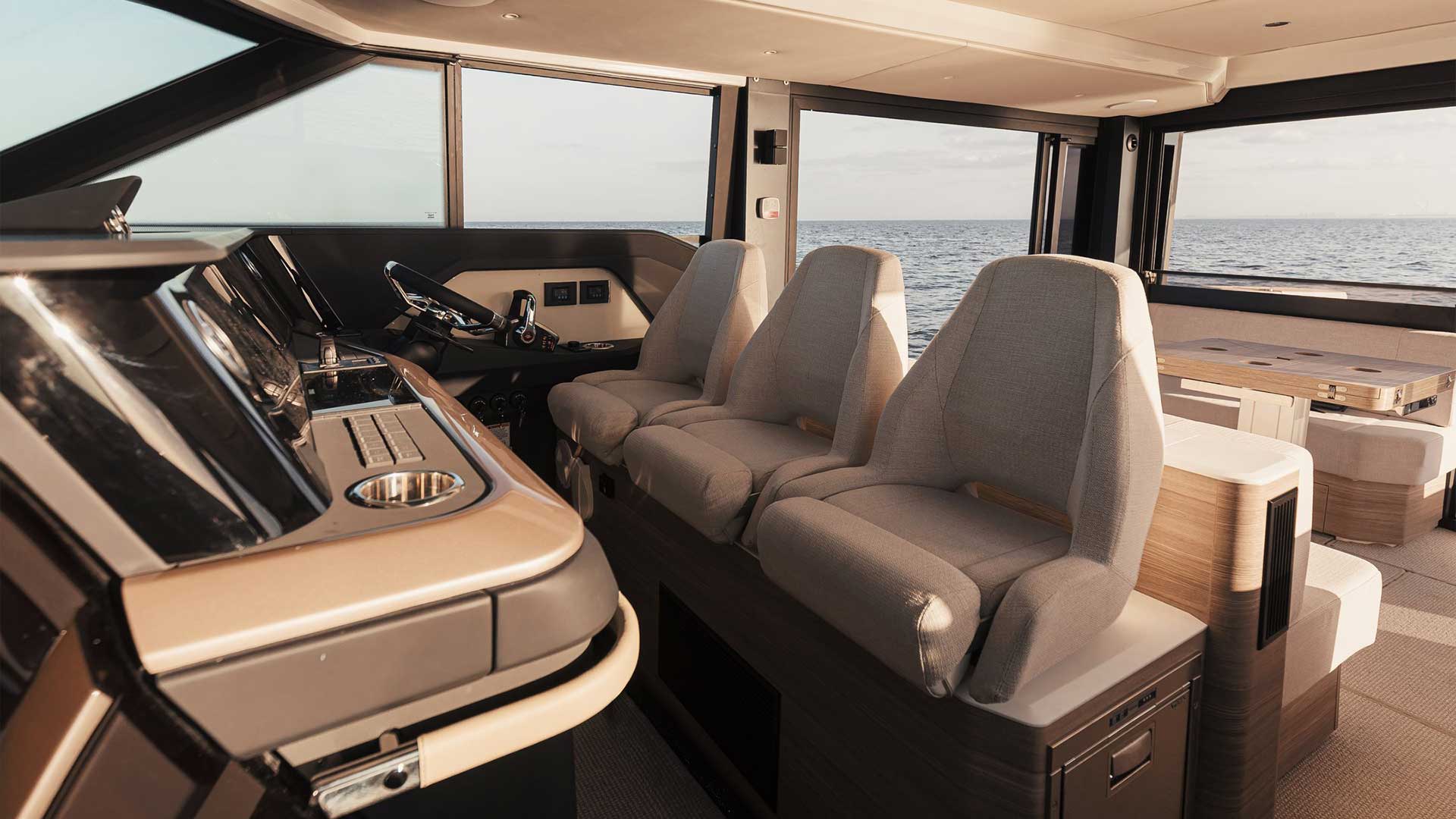Saxdor 460 GTC, kendine özgü siluetimizi şimdiye kadarki en büyük ve en gelişmiş modelimize taşıyor. Amiral gemisi, tamamen kapatılabilen ya da tamamen açılabilen, tam genişlikte bir dümen evi bulunan dıştan takma motorlu bir yat olarak tasarlandı. Kapılar kapalıyken sakin, aydınlık ve ferah bir ortam sunar; dümen mahallinden dineteye kadar geniş görüş açıları sağlar. Açıldığında ise çizgiler adeta ortadan kaybolur.