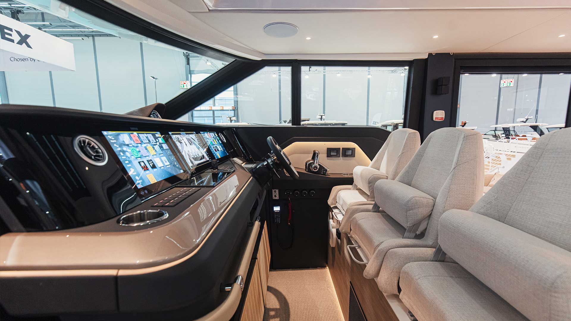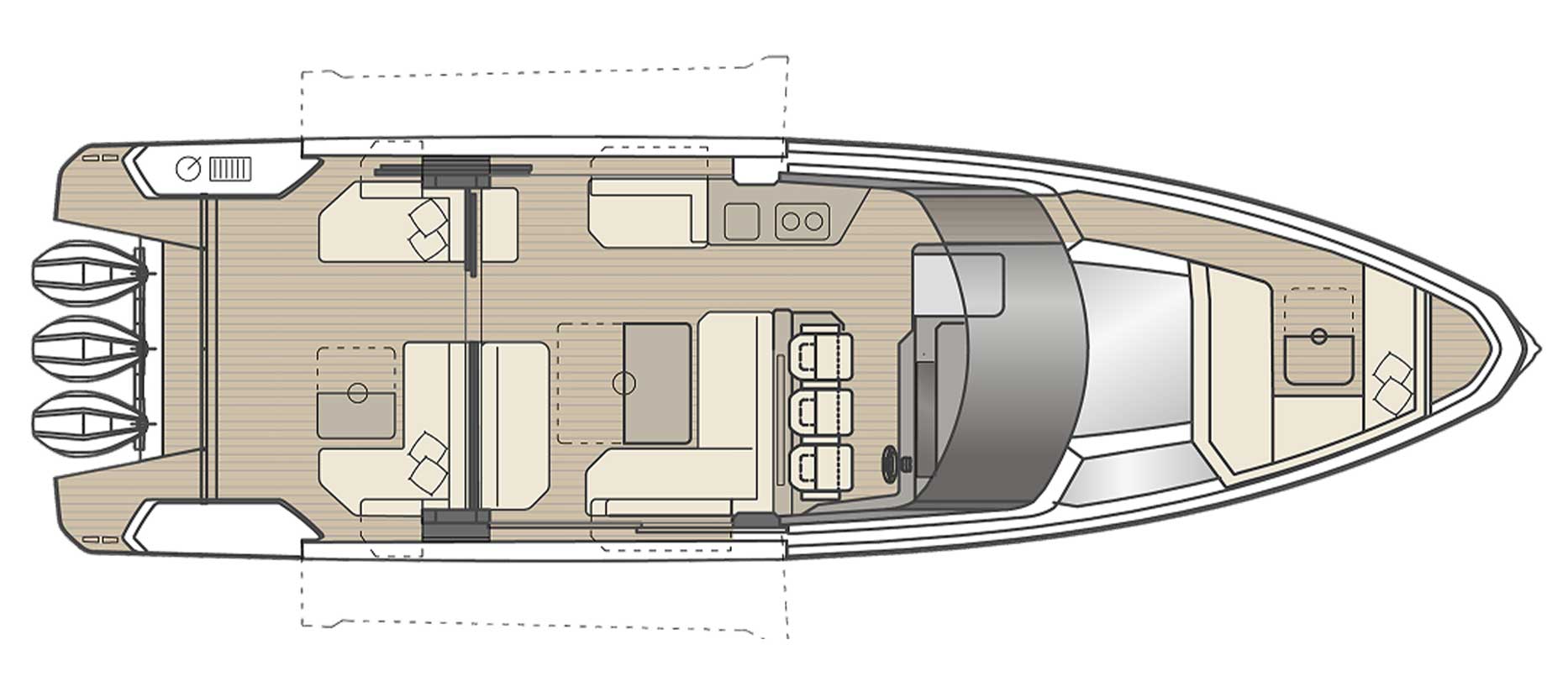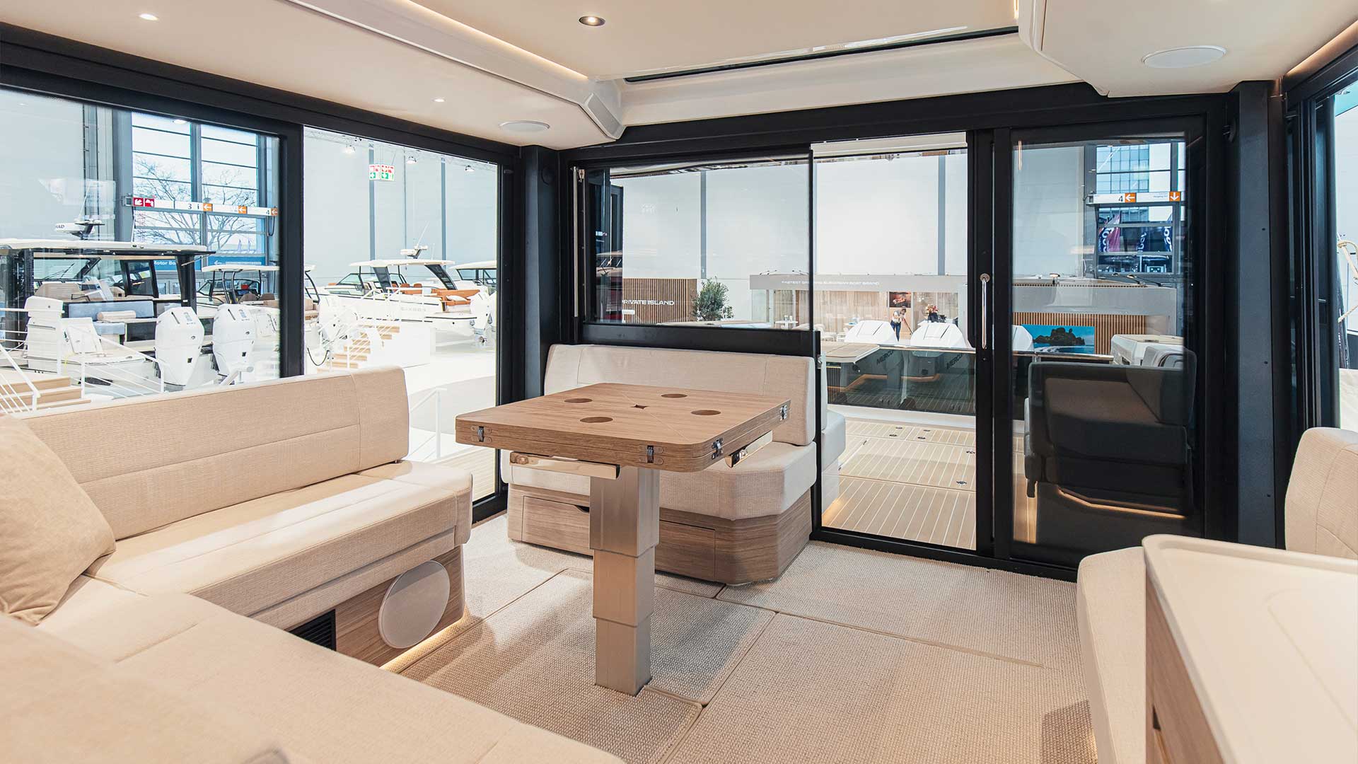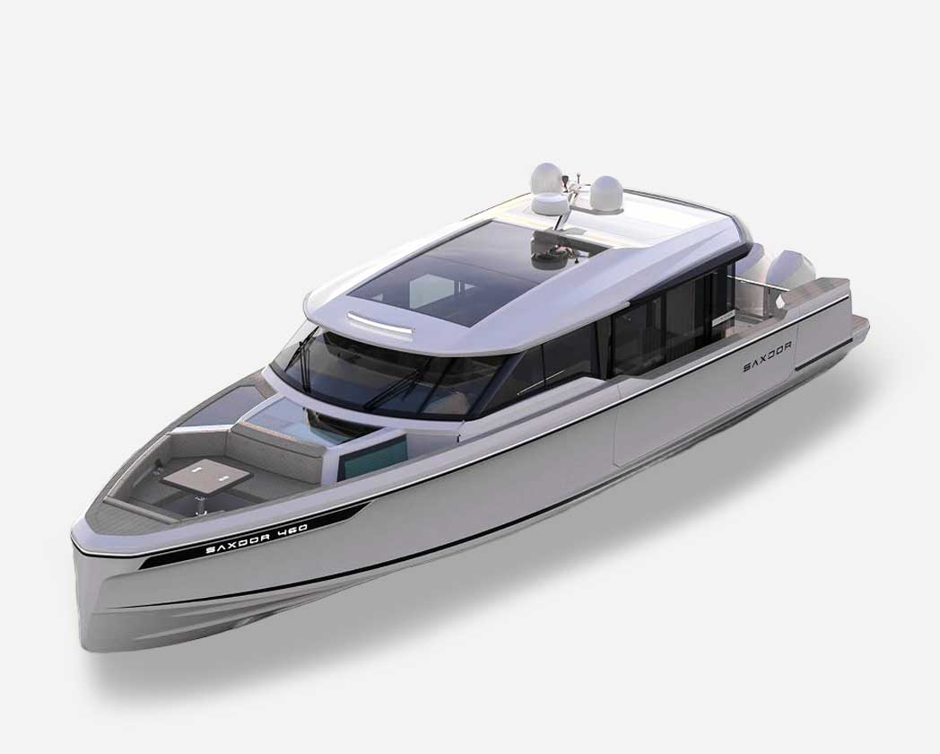 The Saxdor 460 GTC carries our distinctive profile into our largest and most advanced model to date. The flagship is built as a full-beam wheelhouse outboard yacht that can be entirely closed or entirely open. With the doors shut, it stays calm, bright, and breathable, with wide views from helm to dinette. Open it up and the lines disappear.