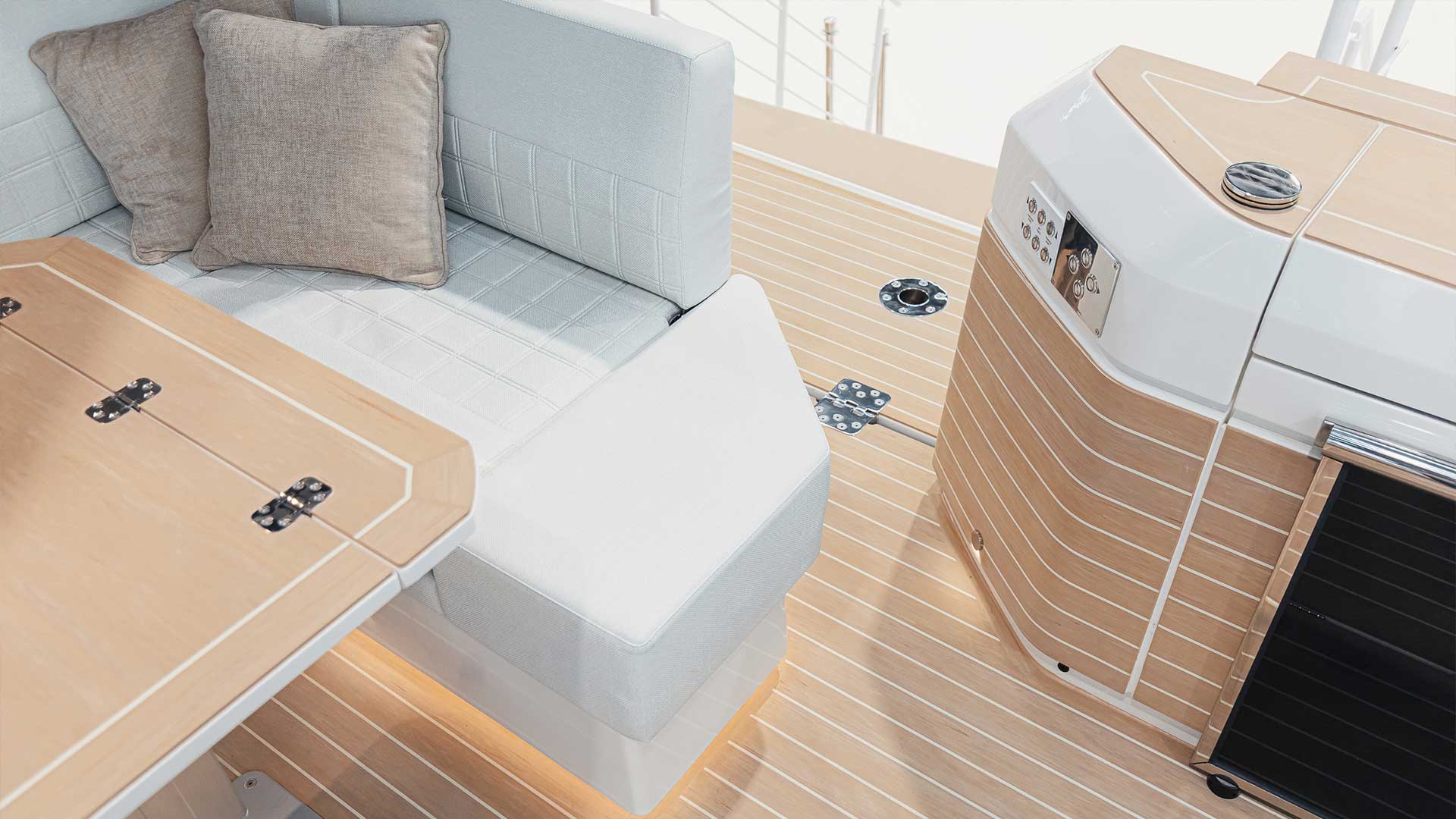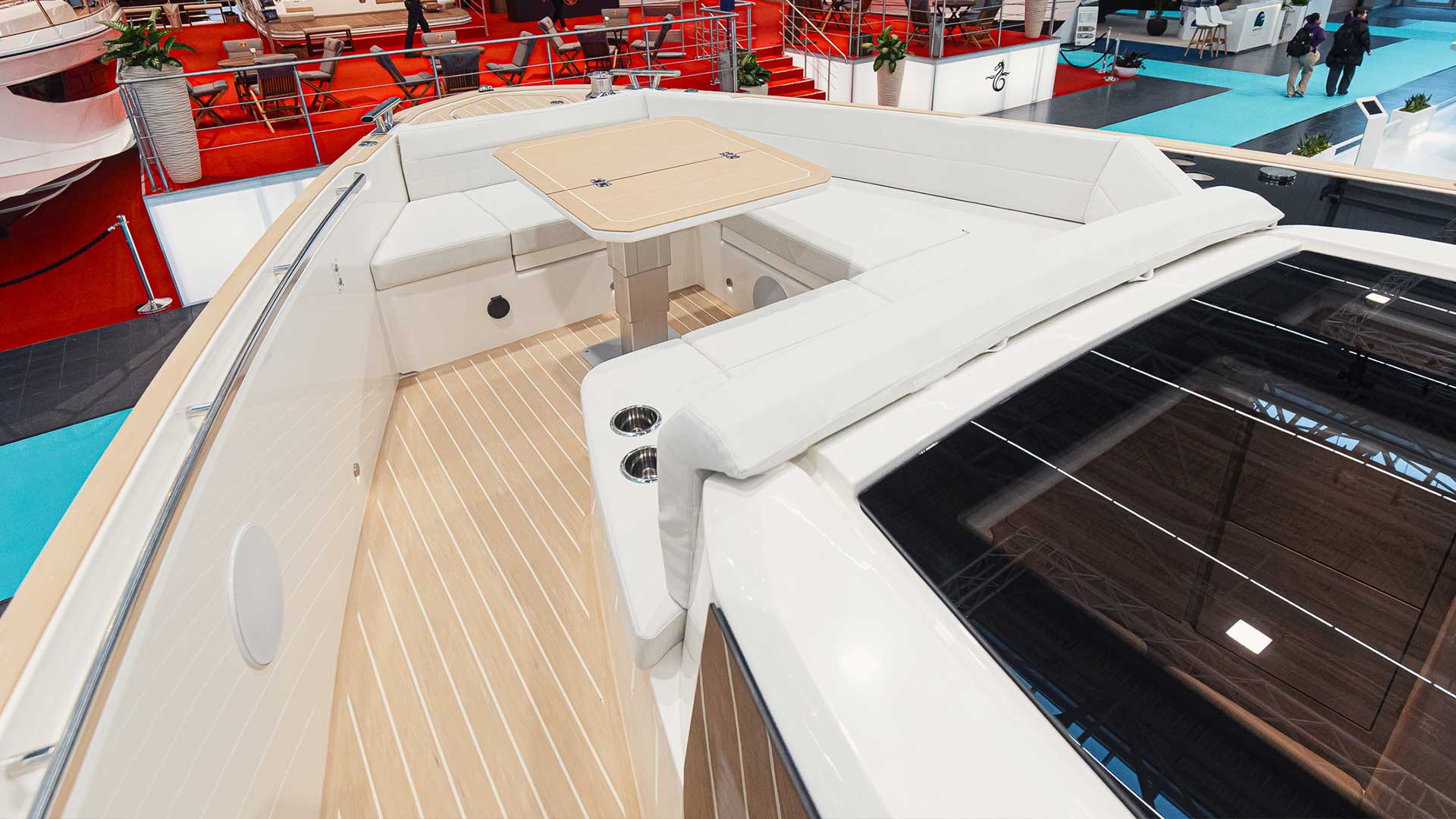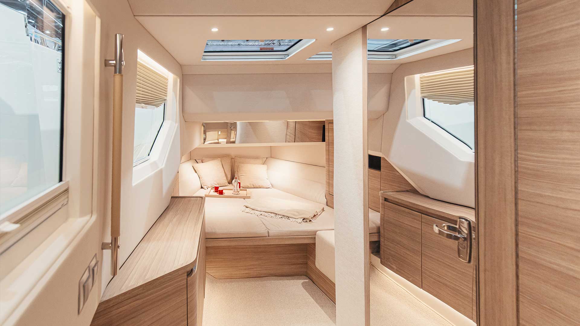 The Saxdor 460 GTC carries our distinctive profile into our largest and most advanced model to date. The flagship is built as a full-beam wheelhouse outboard yacht that can be entirely closed or entirely open. With the doors shut, it stays calm, bright, and breathable, with wide views from helm to dinette. Open it up and the lines disappear.